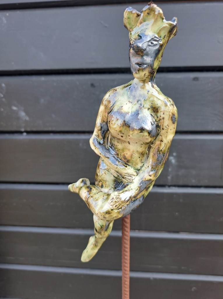 Mina Väsen i stengodskeramik är ett försök att fånga dessa flyktiga gestalter. De dansar, lyssnar, sträcker sig mot himlen eller vilar i tyst samförstånd med skogen. Varje figur är unik, formad av mina händer och ur fantasin och den mytiska känslan av att naturen alltid rymmer mer än det vi kan se.